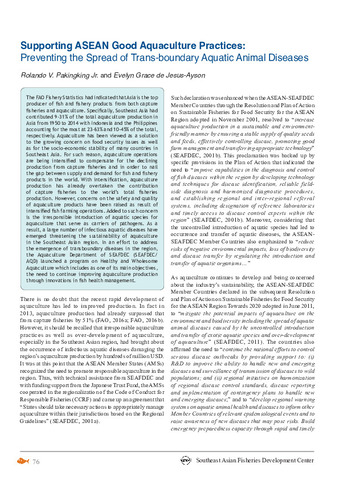 Supporting ASEAN good aquaculture practices: Preventing the spread of trans-boundary aquatic animal diseases